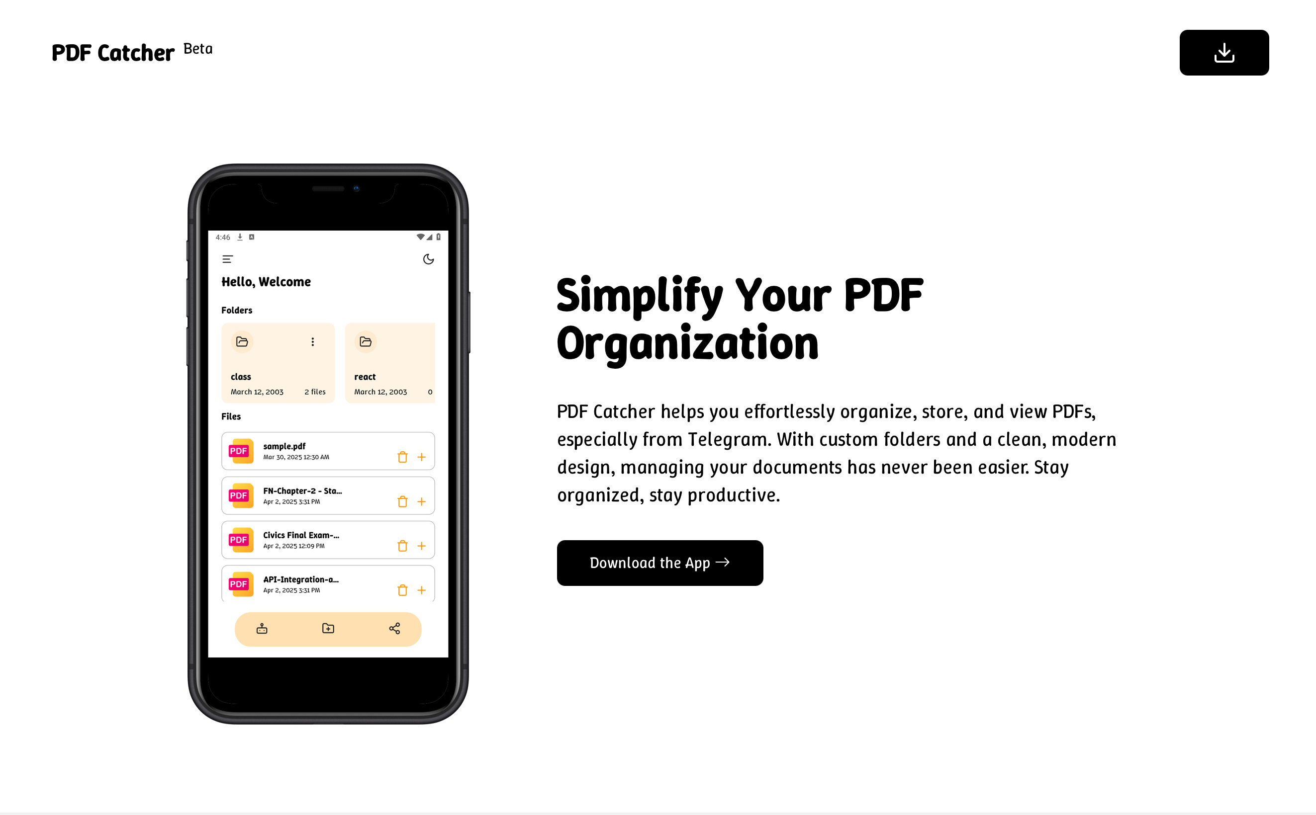 PDF Catcher Mobile App: Yoni introduced PDF Catcher, a mobile app designed to help users organize and view their PDFs, especially those shared via Telegram. The app is available for beta testing. Live Link.