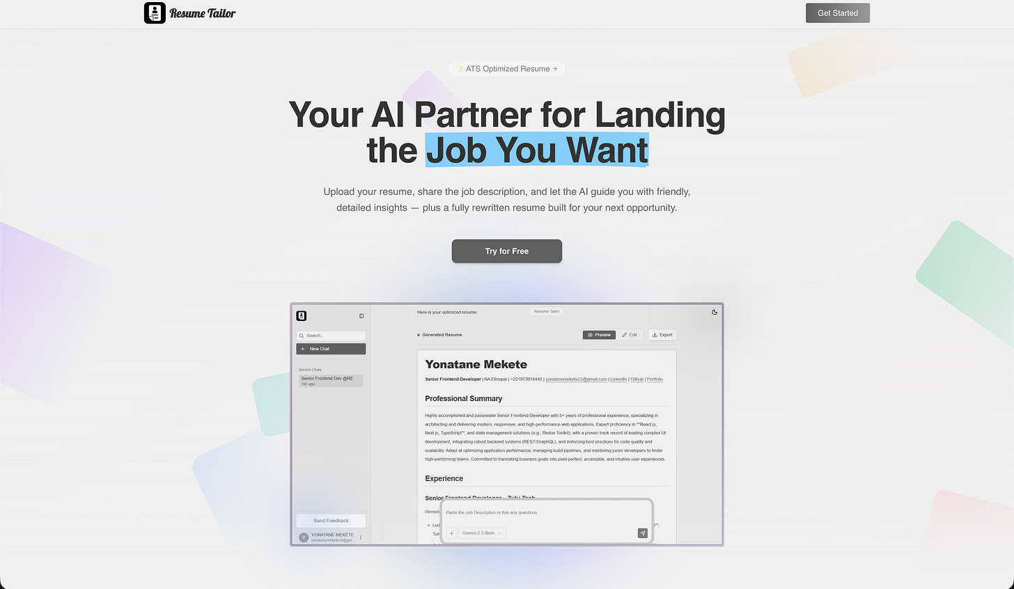 Resume Tailor: YONATANE.M š released Resume Tailor, an AI tool designed to help job seekers optimize their resumes by matching content directly to specific job descriptions. The project is currently in soft release and open for community feedback. 1, Live Demo, GitHub.